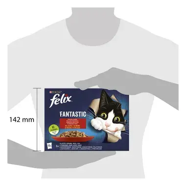 Svaki Felix® LE GHIOTTONERIE recept je napravljen od visokokvalitetnih sastojaka i dolazi u mekim komadima nalik na žele koji će se svideti vašem ljubimcu! Felix® hrana za mačke je takođe izvor esencijalnih Omega-6 masnih kiselina, koja sadrži izbalansiranu kombinaciju minerala i vitamina kako bi vaša mačka bila puna energije i spremna za ludorije! Prepuna korisnih hranljivih materija, hrana će zadovoljiti 100% dnevnih potreba vaše mačke ako se pridržavate preporuka za hranjenje. To nije sve! Felix® Fantastic Vet Cat Food je dostupna u širokom spektru sočnih žele obroka kako bi se zadovoljila ljubav vašeg ljubimca prema raznovrsnosti svakog dana.