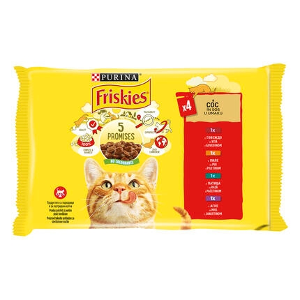 Bez dodatih veštačkih boja, aroma i konzervanasa Friskies® hrani mačke dobrom, zdravom hranom decenijama u nazad. Mi punimo milione činija i ta čast dolazi sa velikom odgovornošću. Na nama je da posmatramo da svaka mačka koja jede ukusni Friskies® dobije zdravu hranu koja joj je potrebna. Zbog toga su Friskies® recepti napravljeni bez dodatih veštačkih boja, aroma i konzervanasa. Tako da možete i dalje da ih hranite istom ukusnom hranom koju vole i budete ponosni zbog toga.